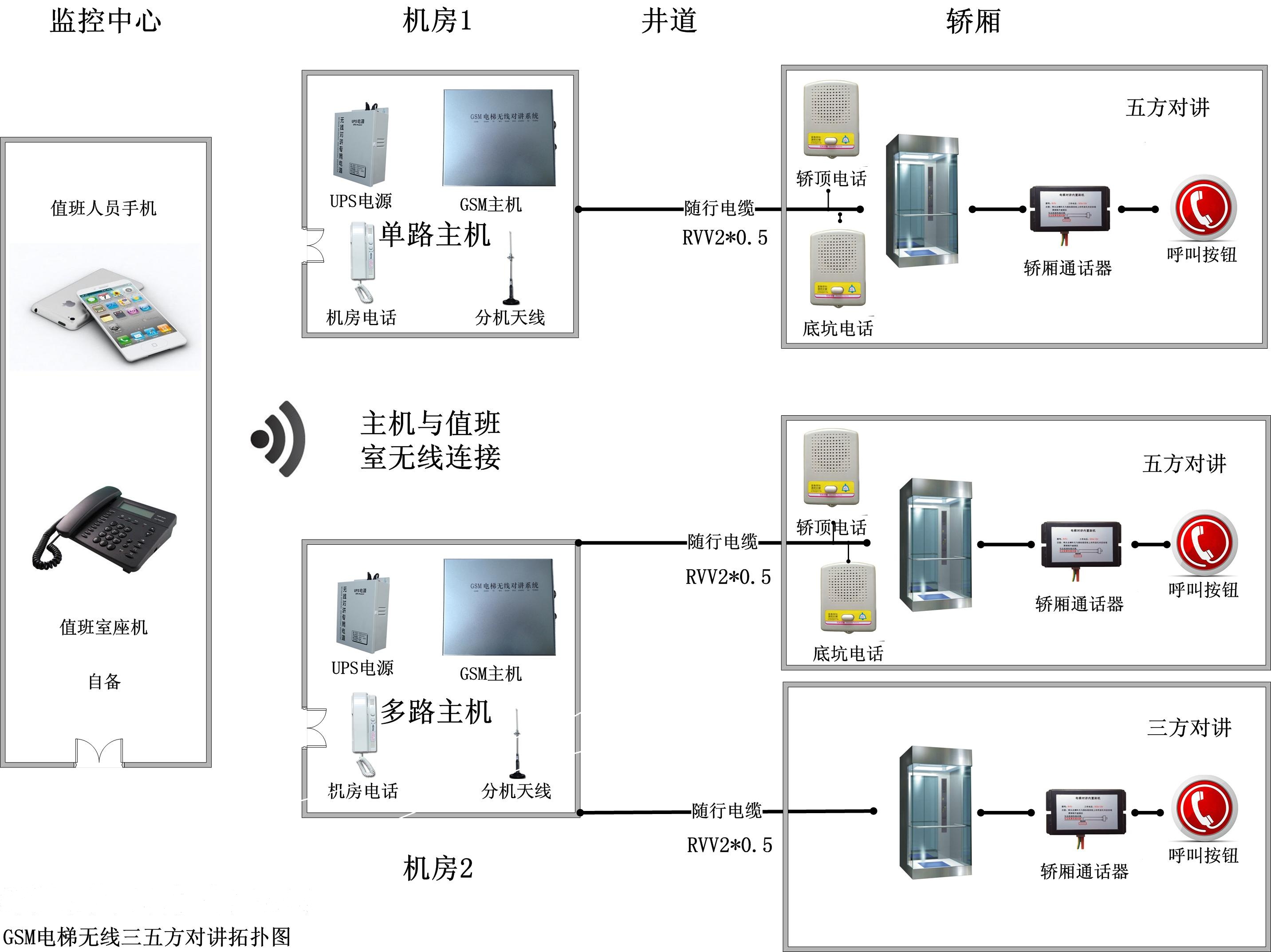 安裝方法:將電梯無線對(duì)講主機(jī)安裝在電梯機(jī)房。首先使用劃線器標(biāo)出安裝位置,用電鉆鉆孔,將螺栓把主機(jī)固定好。最好安裝在離門窗近的地方方便無線信號(hào)的接收和發(fā)射,把12V-UPS電源插在電源接口上,打開電源,看電源燈是否已變亮,看主機(jī)側(cè)面電源燈是否變亮,變亮表示主機(jī)已處于正常工作狀態(tài),把機(jī)房電話接入電話接口處,最后再插入控制線到通話器接口上,把控制線上的兩條(黃綠)線接入準(zhǔn)備好的兩條隨行電纜上,這時(shí)機(jī)房設(shè)備已全部安裝完備(注:每臺(tái)主機(jī)可接三臺(tái)電梯)。